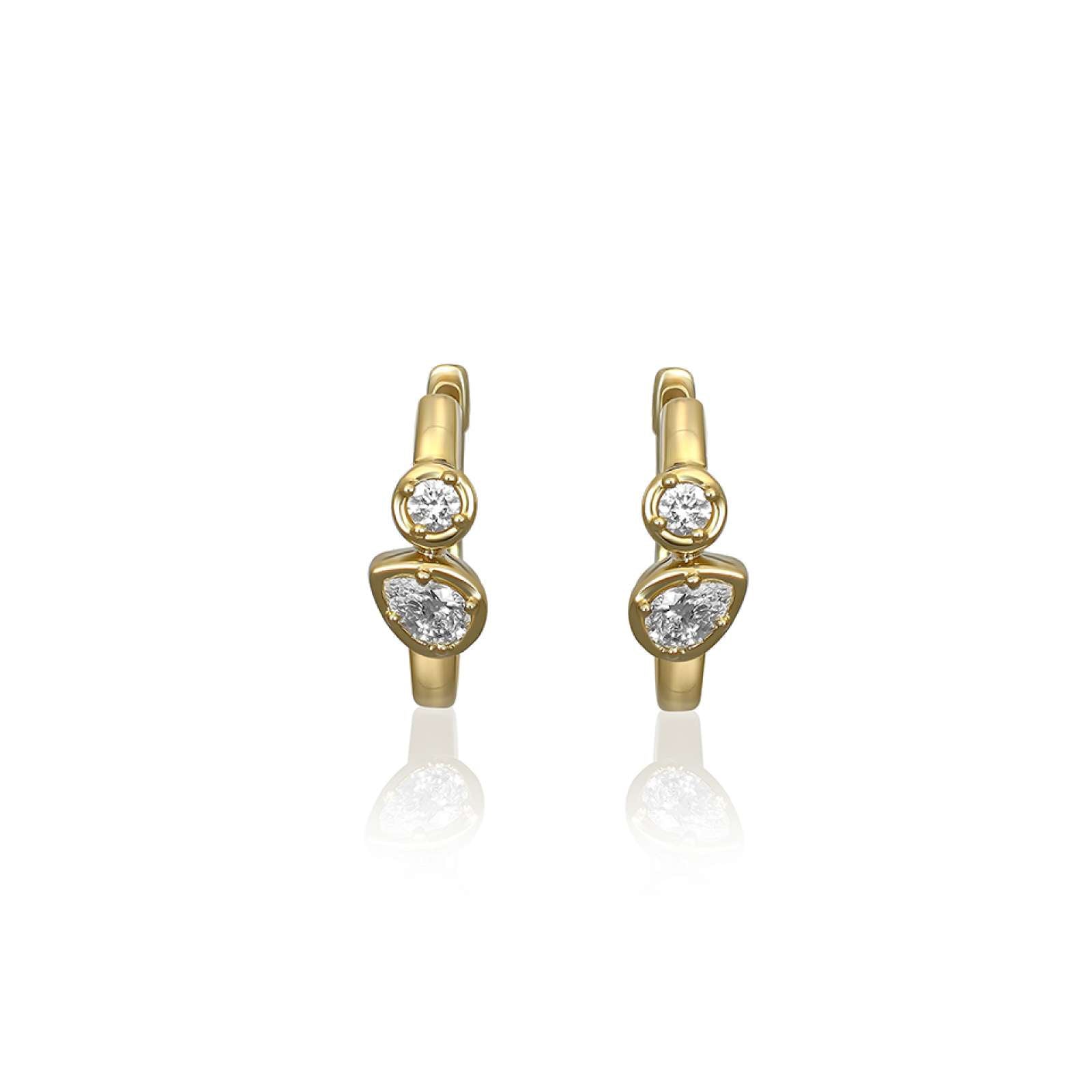 18ct Yellow Gold Diamond Pear and Round Hoop Earrings 0.40ct