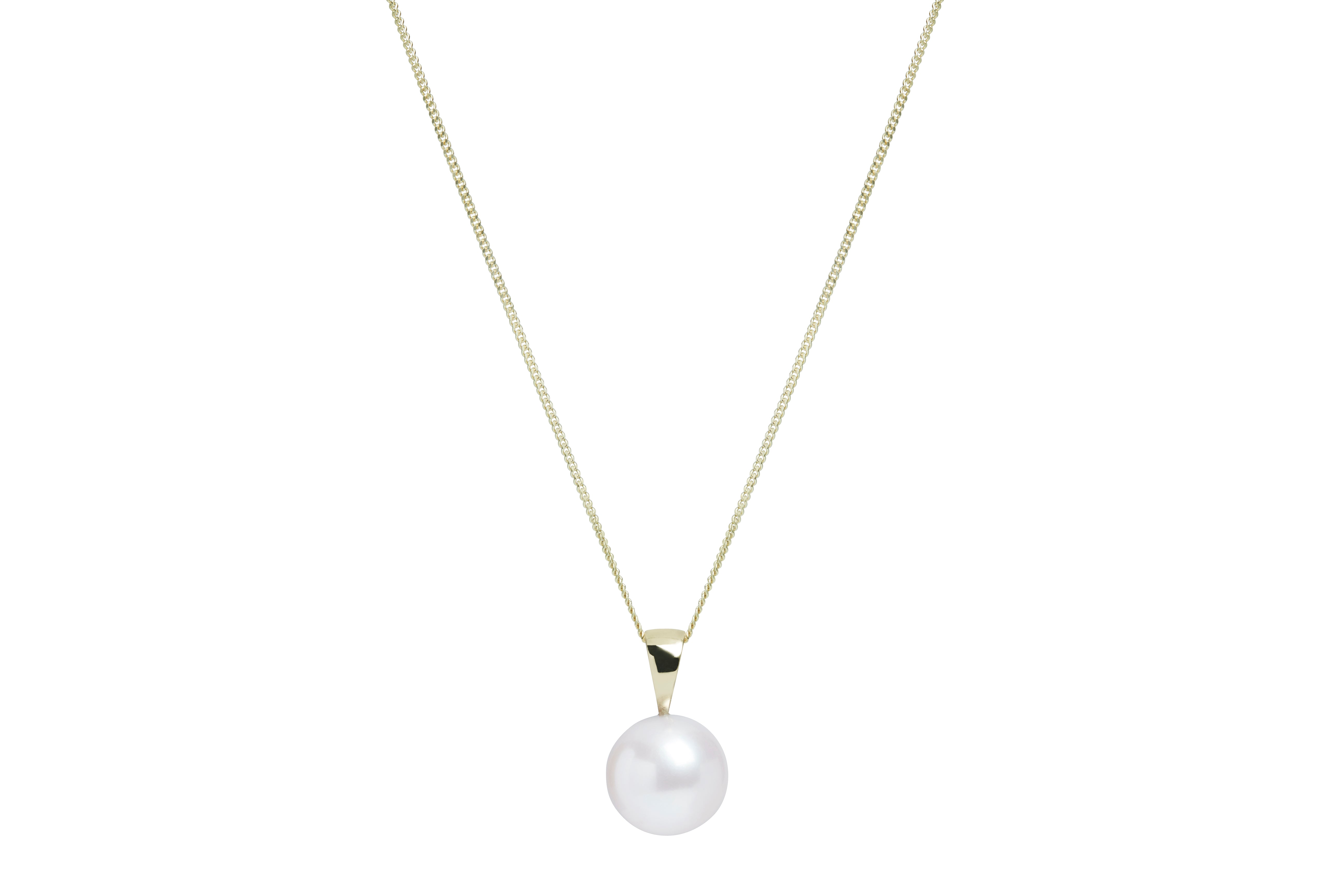 9ct Yellow Gold White River Pearl Round Shape Pendant 10-10.5mm