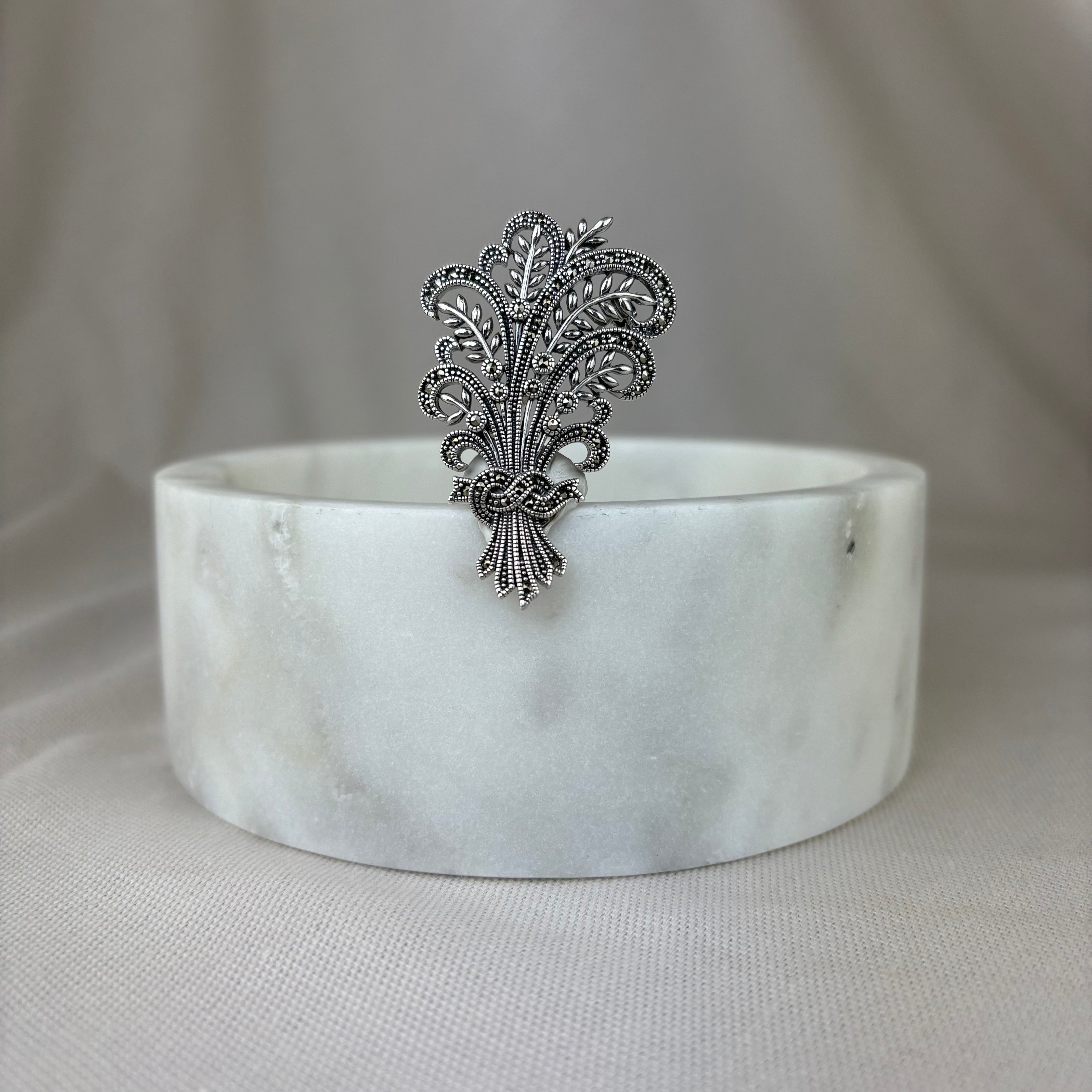 Vintage Design Sterling Silver Marcasite Bouquet Brooch