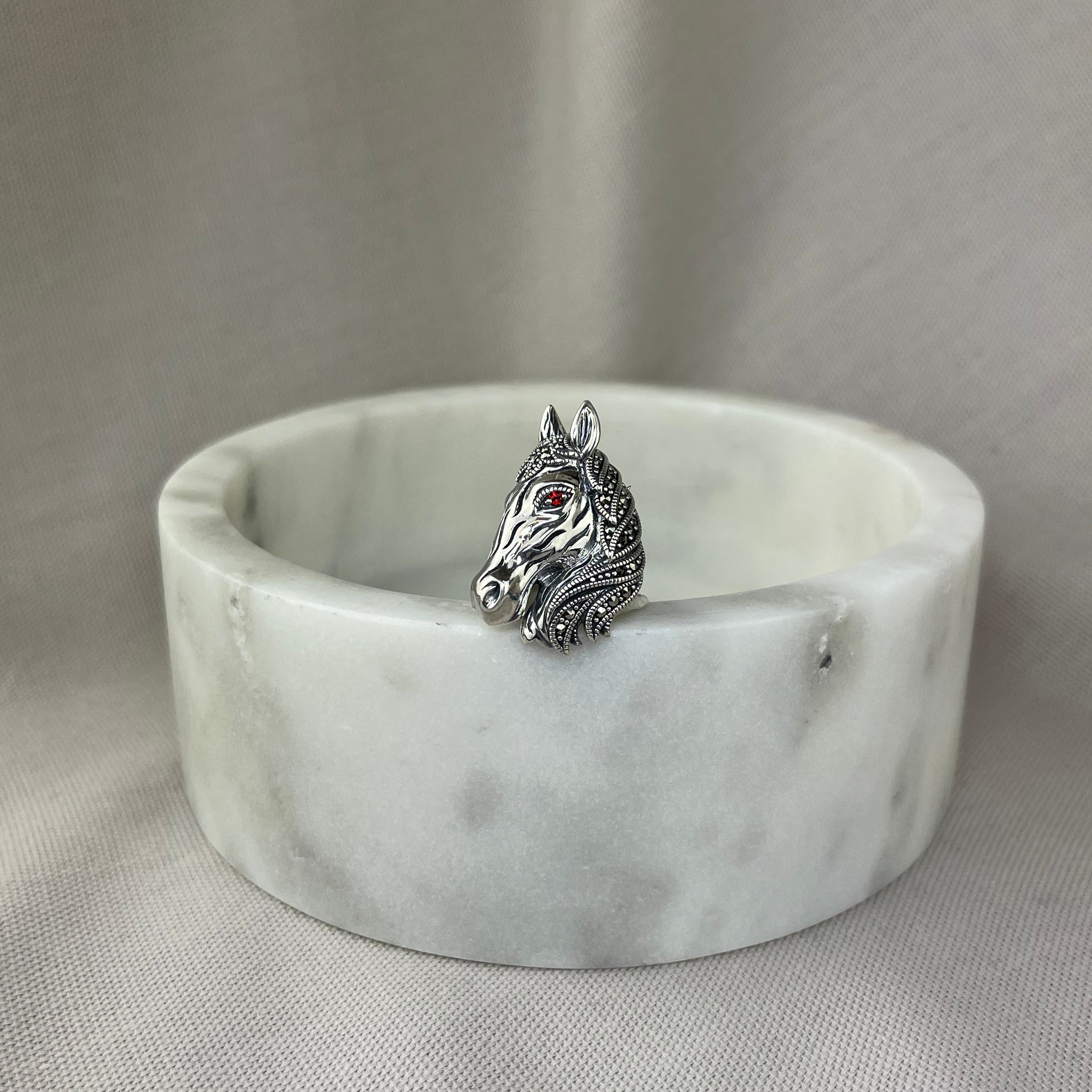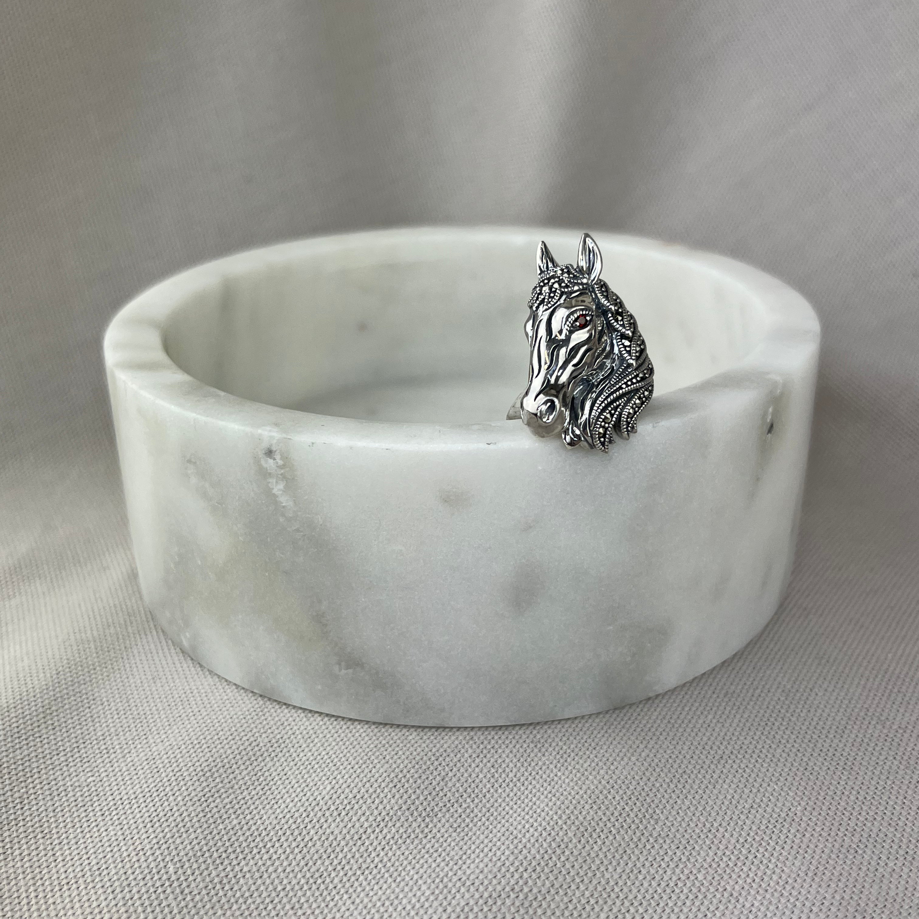 Vintage Design Sterling Silver Marcasite Horse Head Brooch