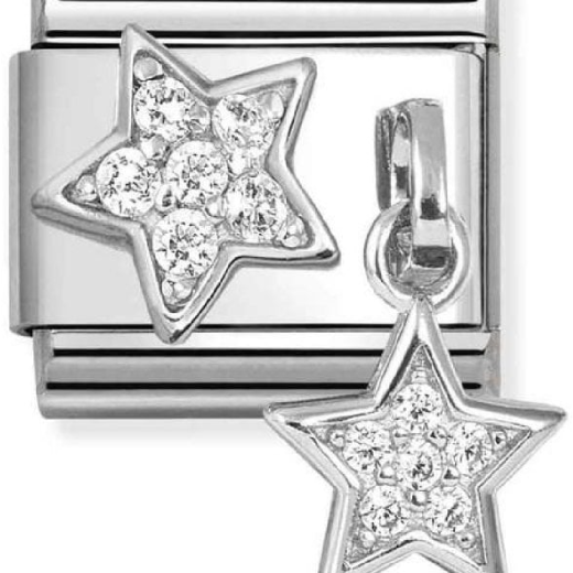 Nomination Classic Silver CZ Pavé Double Star Drop Charm
