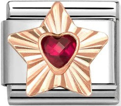 Nomination Classic Rose Gold Diamond Cut Star Red CZ Charm