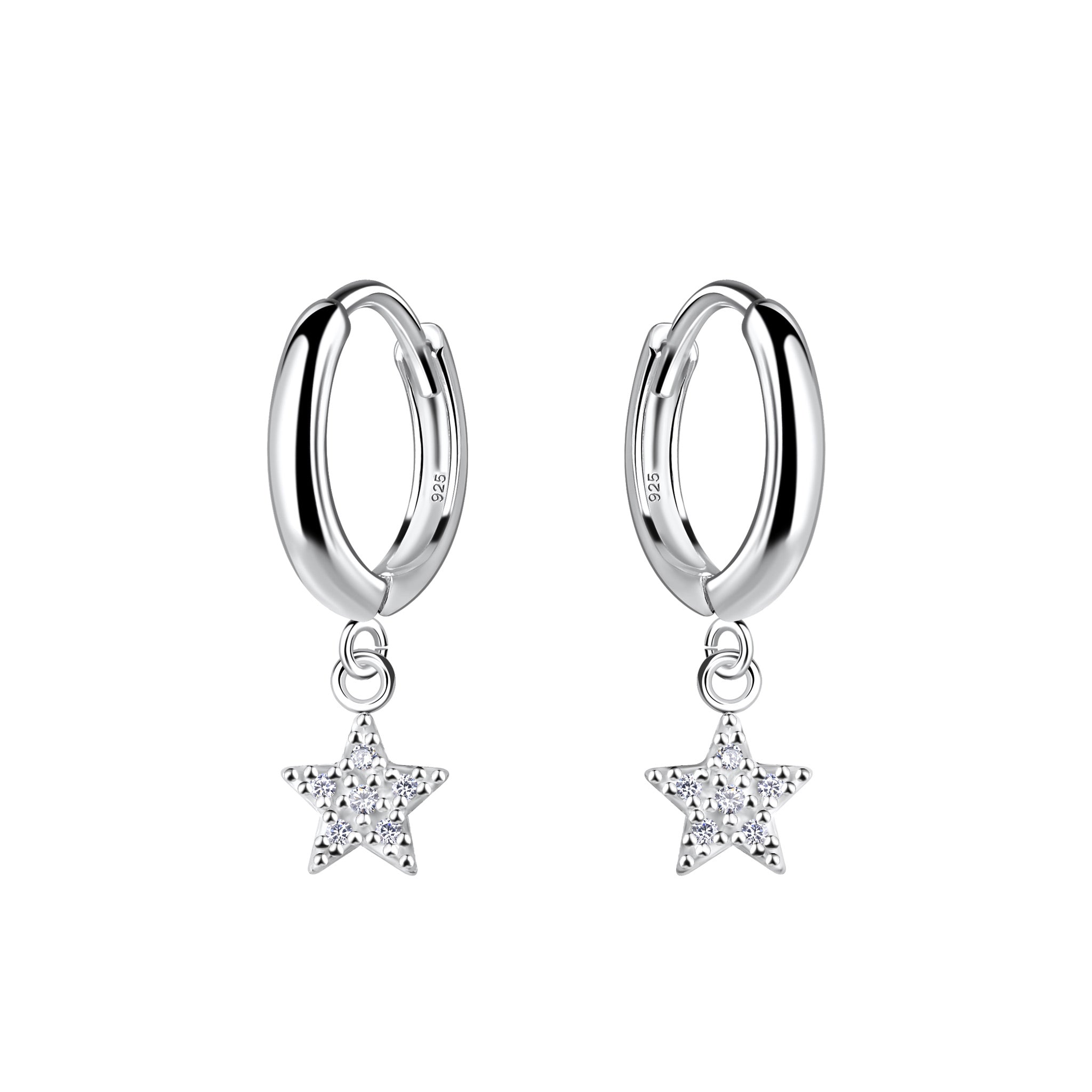 Dew Silver Charm Star CZ Hinged Hoop Earrings 11mm