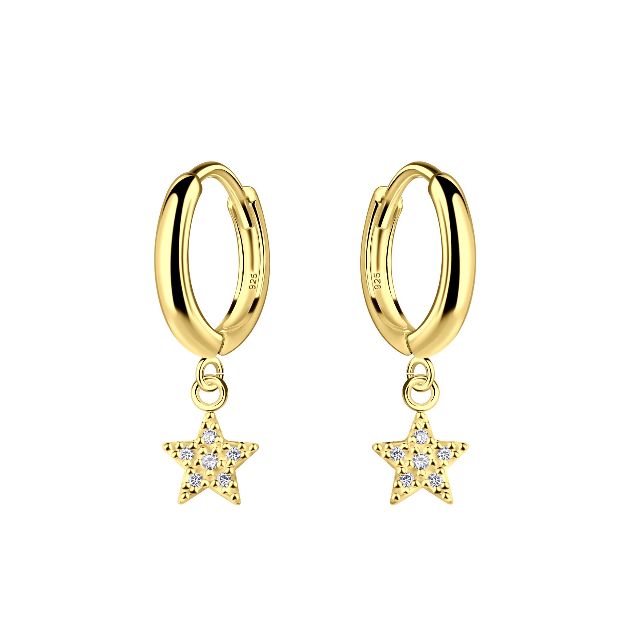 Dew Silver Gold Plated Charm Star CZ Hinged Hoop Earrings 11mm