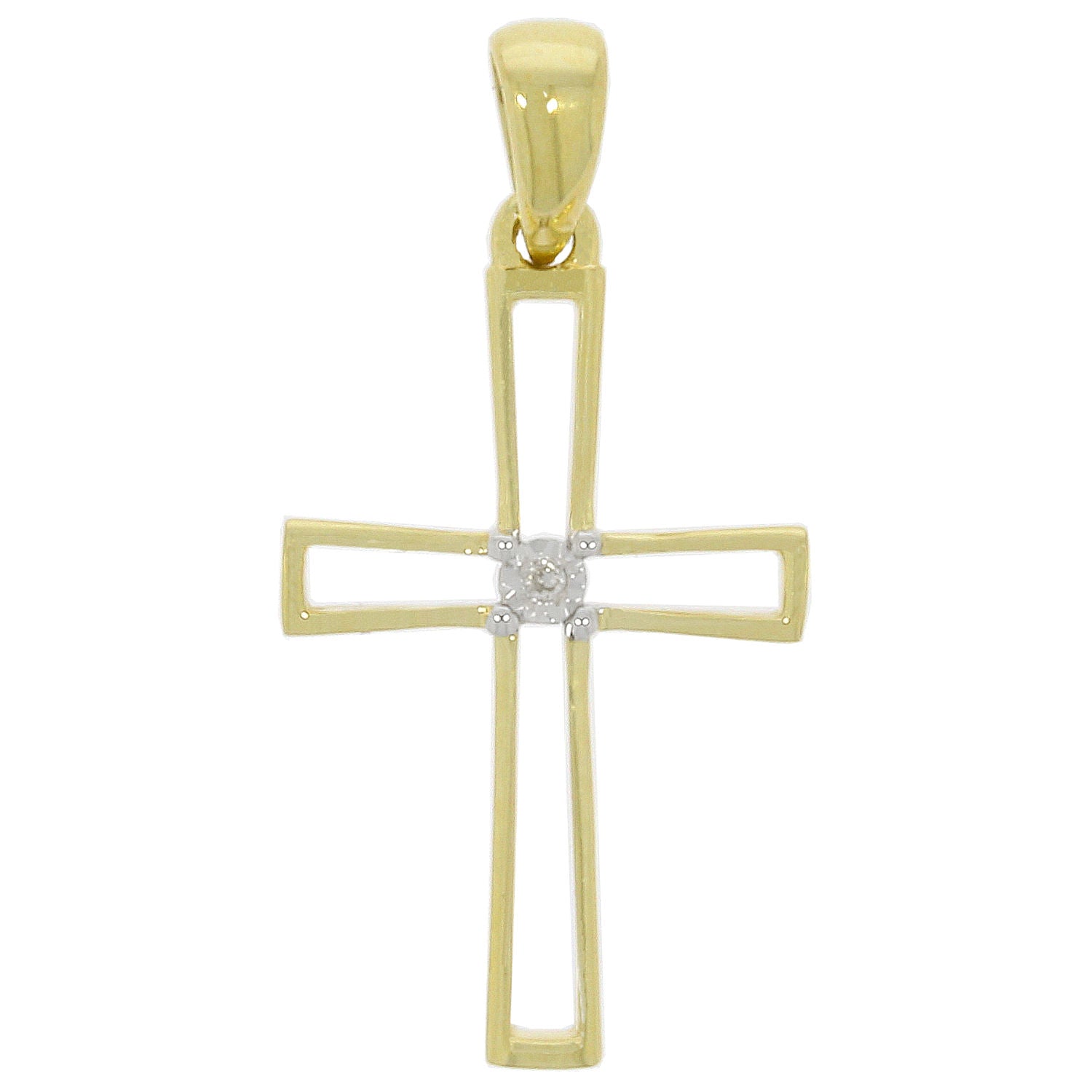 9ct Yellow Gold Diamond Illusion Cross Pendant