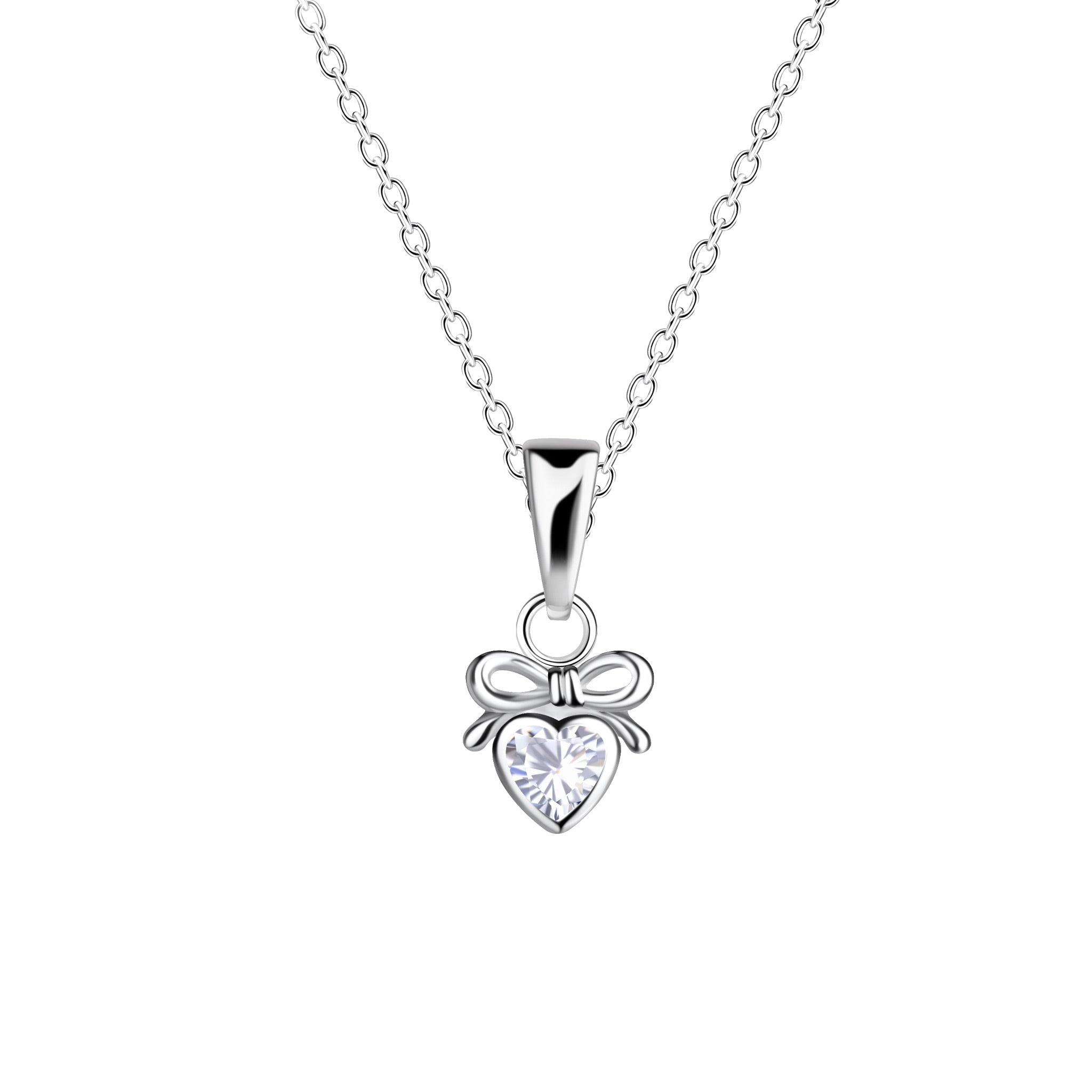 Dew Silver Dainty Heart Bow CZ Pendant