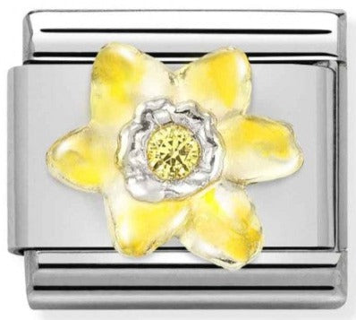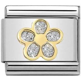 Nomination Classic Gold Glitter Enamel Silver Flower Charm