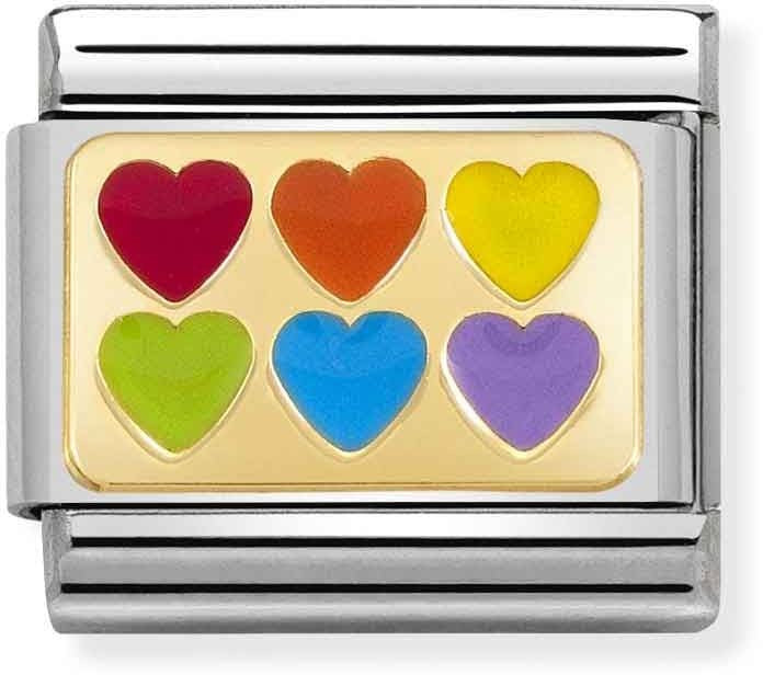 Nomination Classic Gold Rainbow Enamel Hearts Charm