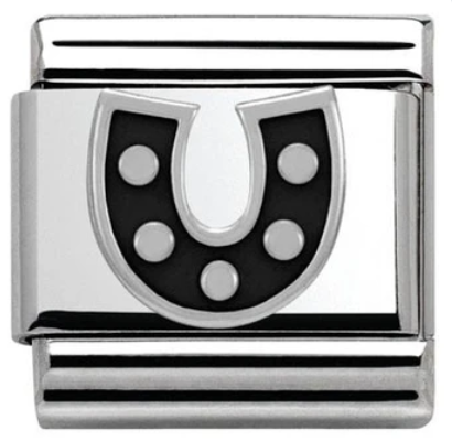 Nomination Classic Silver Enamel Black Horseshoe Charm