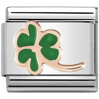 Nomination Classic Rose Gold Enamel Green Shamrock Charm