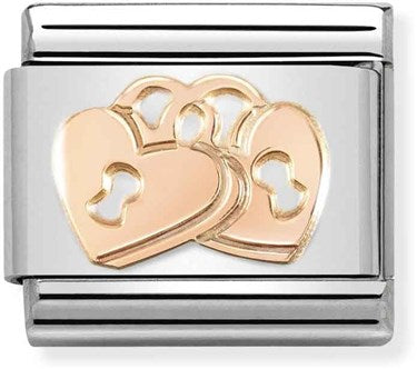 Nomination Classic Gold Double Heart Shape White CZ Charm