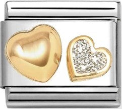 Nomination Classic Gold Glitter Enamel Heart with Raised Heart Charm