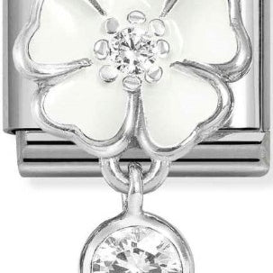 Nomination Classic Silver Enamel White Flower CZ Drop Charm
