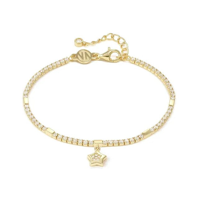 Nomination Petite Sparkle Star Charm Tennis Bracelet, Sterling Silver Gold Plated CZ