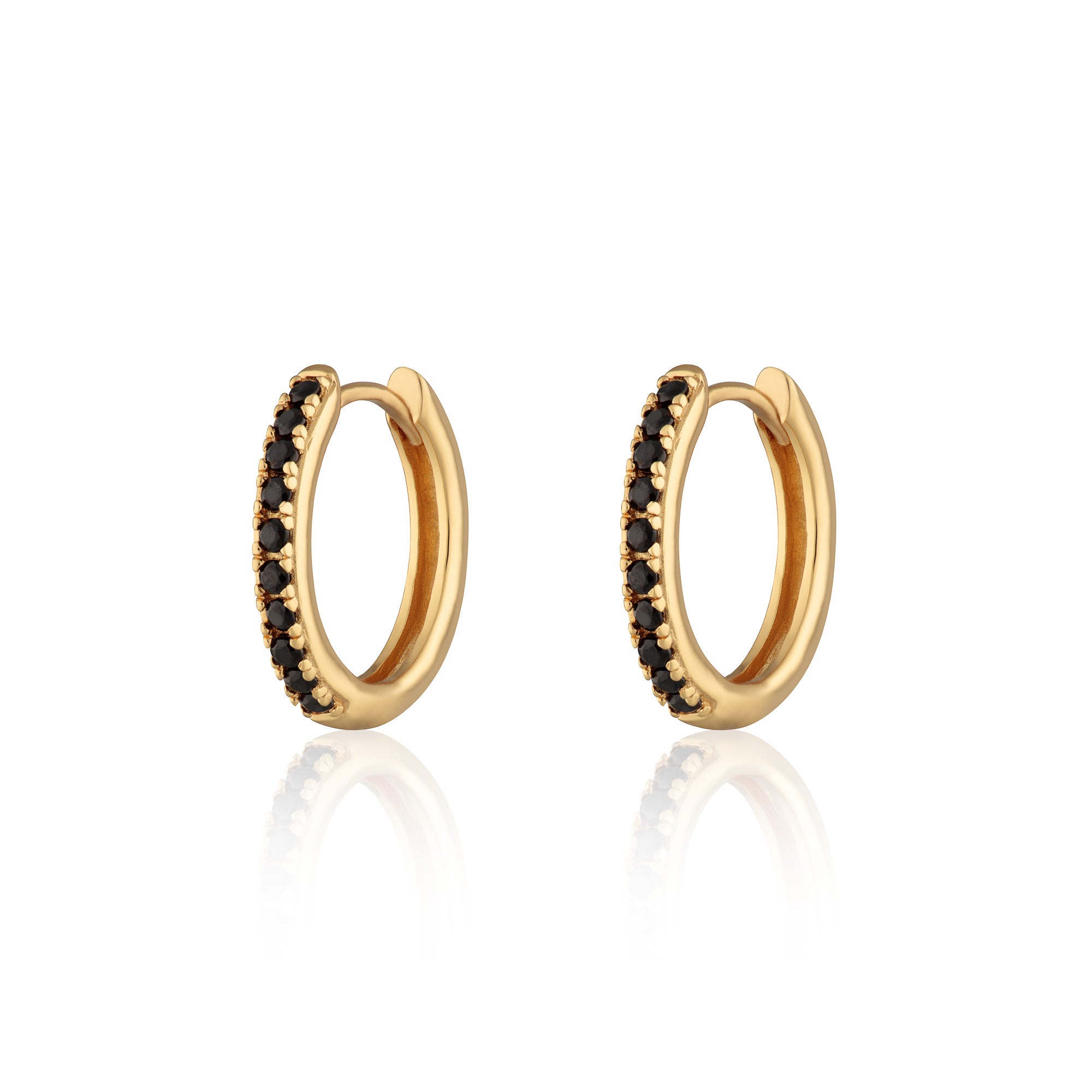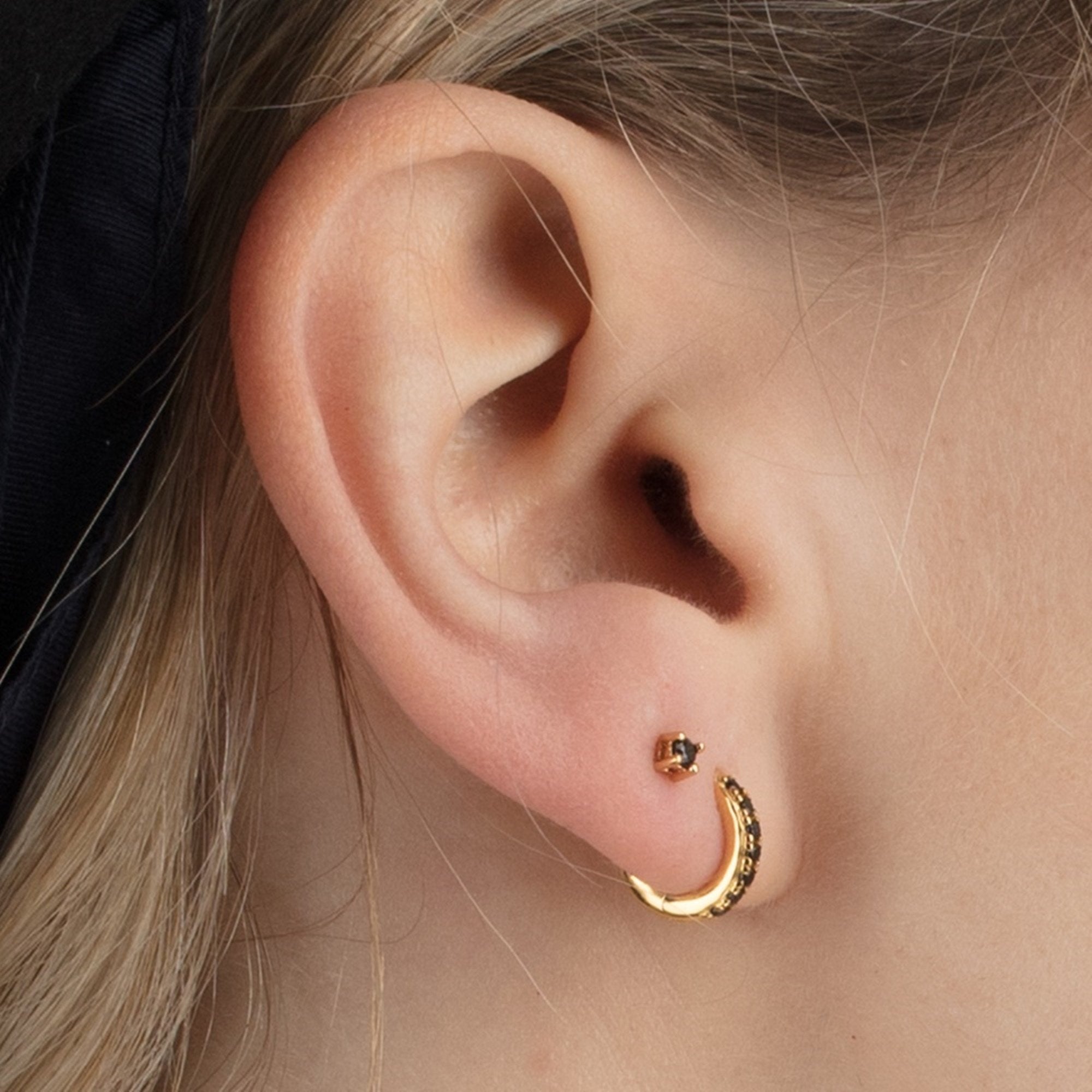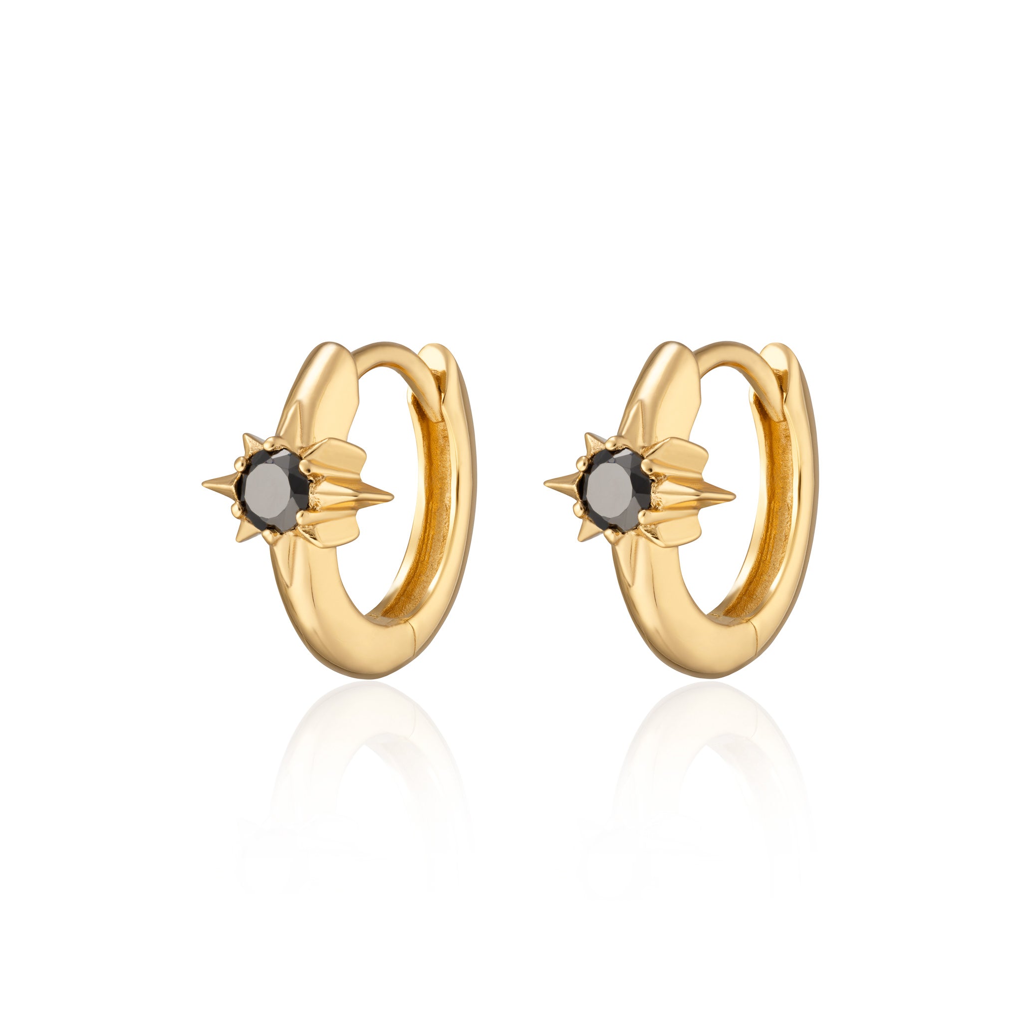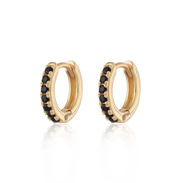 Scream Pretty Black Stones Huggie Hoop Earrings Gold Plated