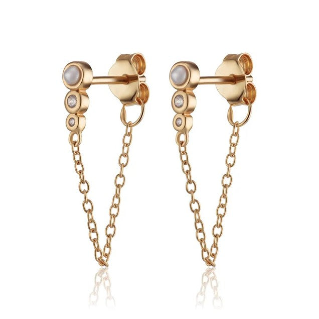 Scream Pretty Hannah Martin Chained Pearl Drop Stud Earrings Gold Plated