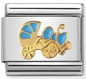 Nomination Classic Gold Enamel Blue Pram Enamel Charm SALE