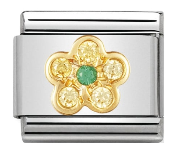 Nomination Classic Gold CZ Light Yellow Green Flower Charm SALE