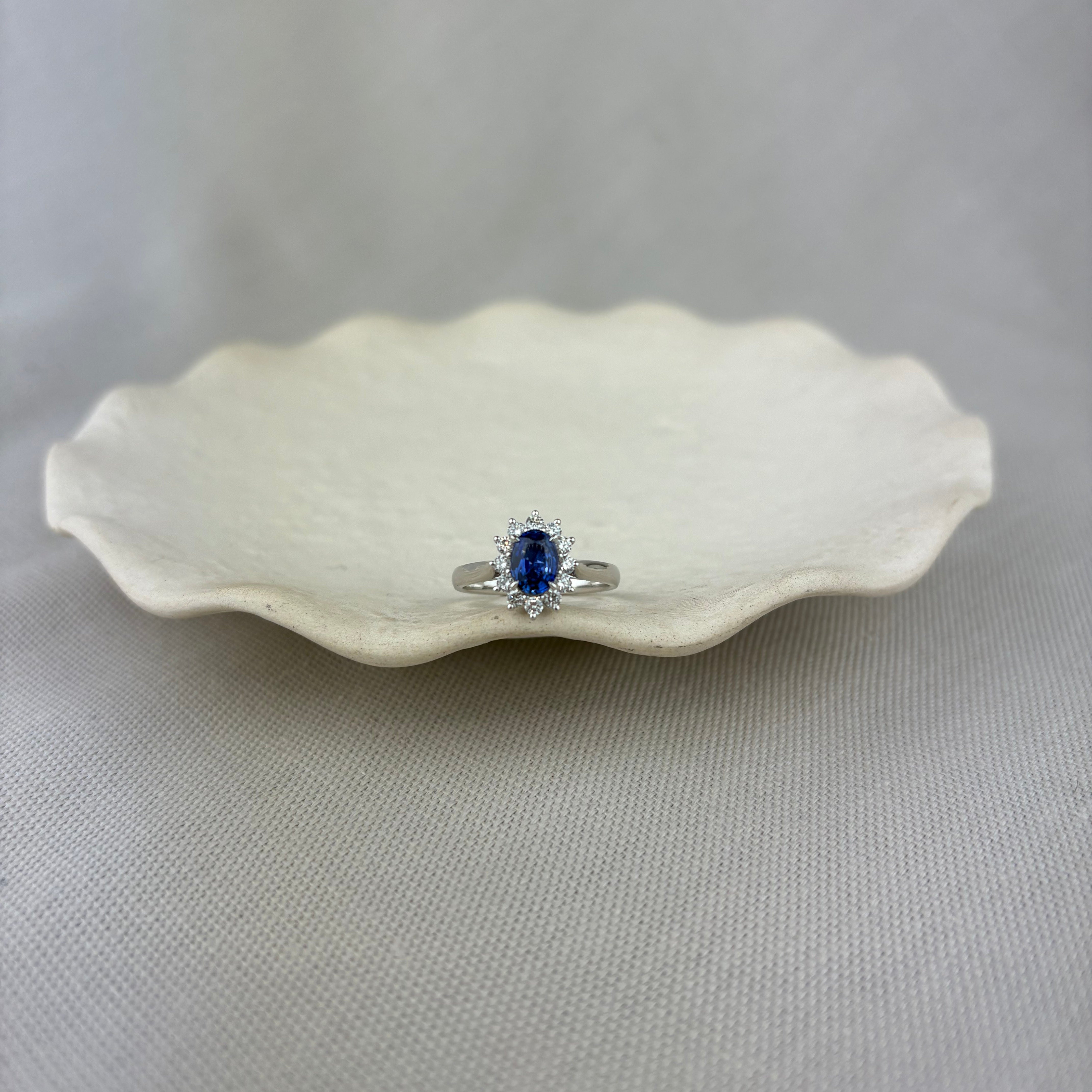 Platinum Ceylon Sapphire Diamond Oval Cluster Ring