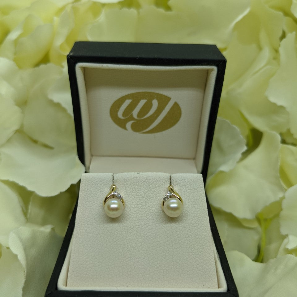9ct Yellow Gold Pearl Diamond Wishbone Stud Earrings 5mm