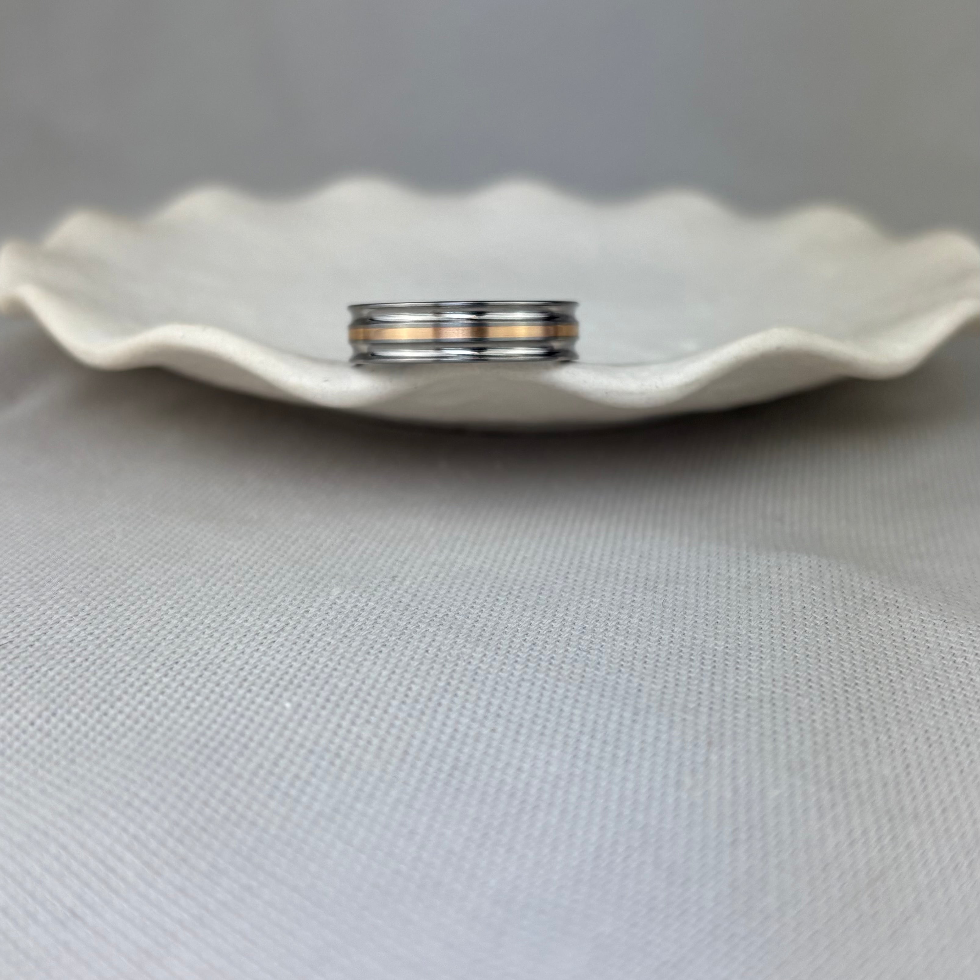 Titanium 18ct Rose Gold Inlay Groove Band Ring 6mm SALE