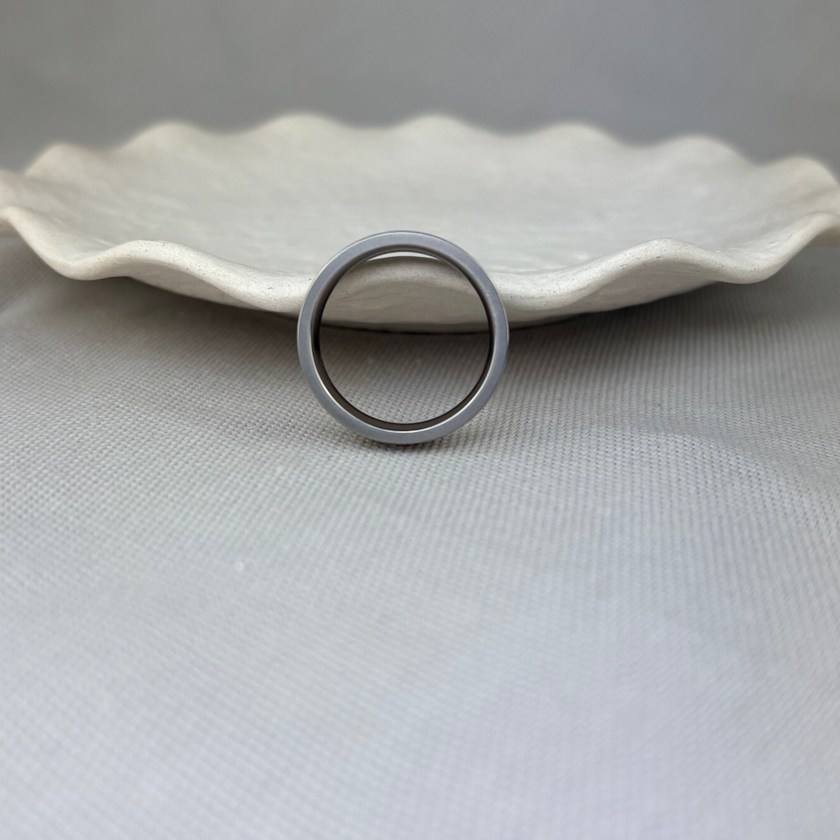 Stainless Steel Gents Brushed Grey Concave Band Ring 4mm SALE