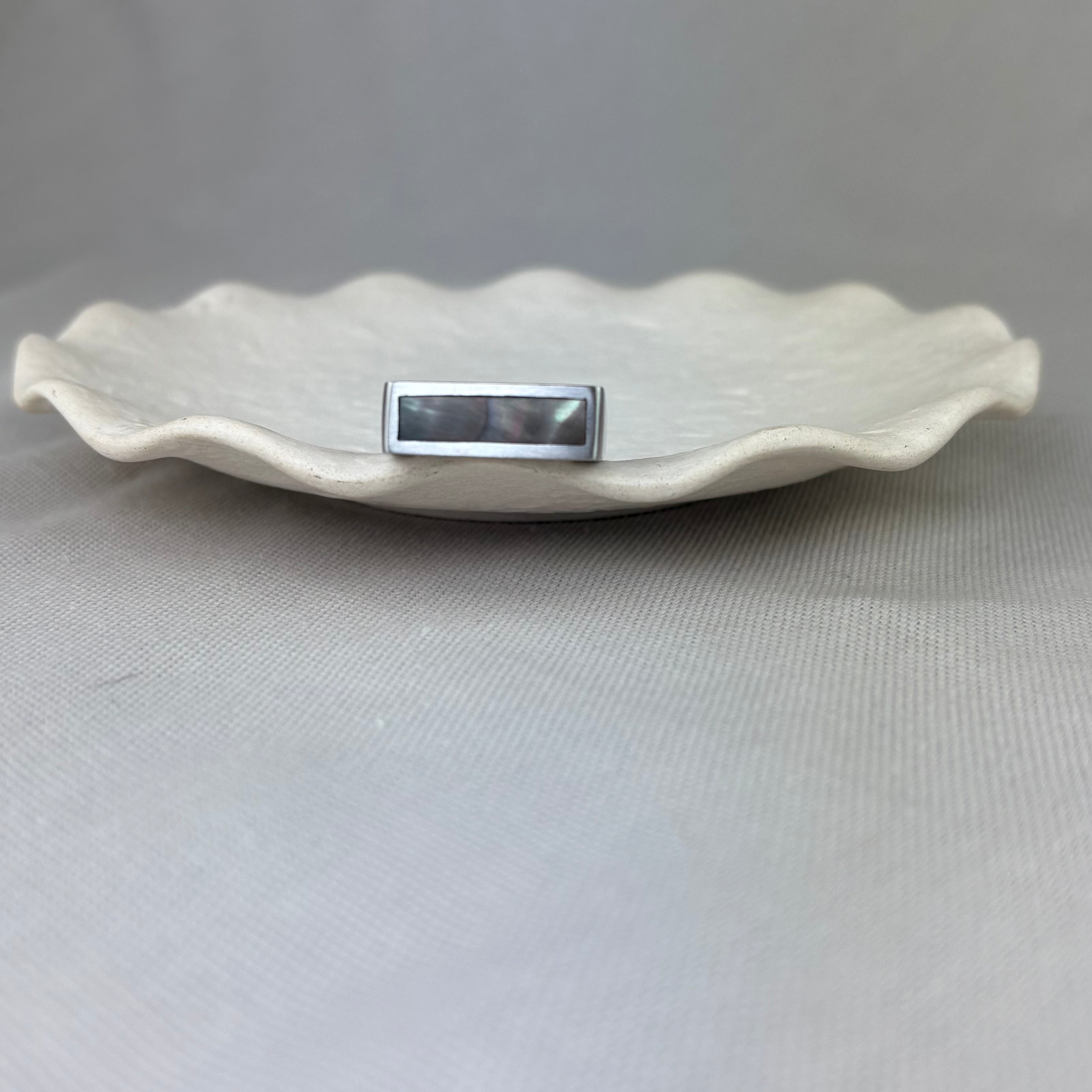 Stainless Steel Black Mother of Pearl Rectangular Signet Ring SALE