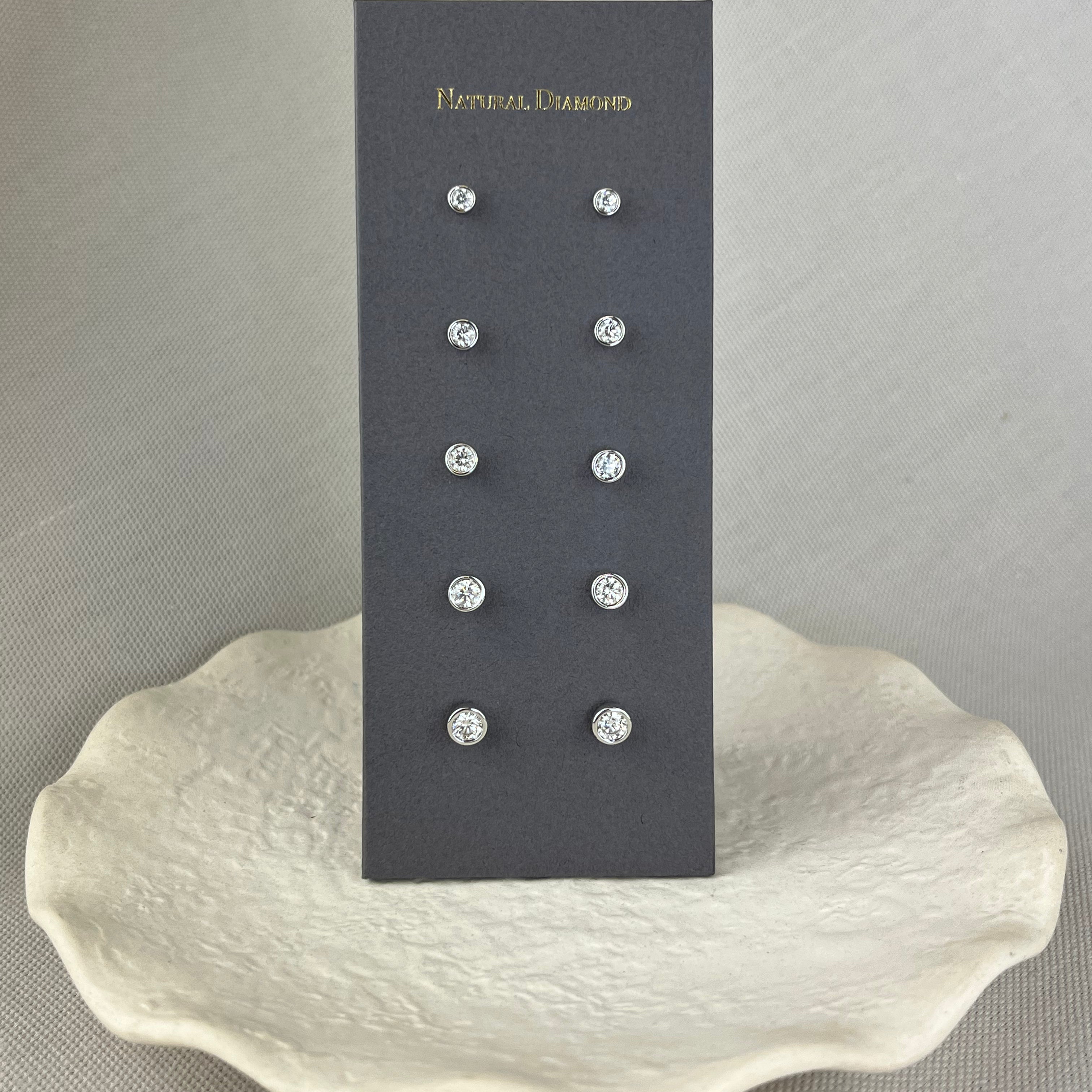 9ct White Gold Diamond Solitaire Brilliant Cut Rubover Stud Earrings