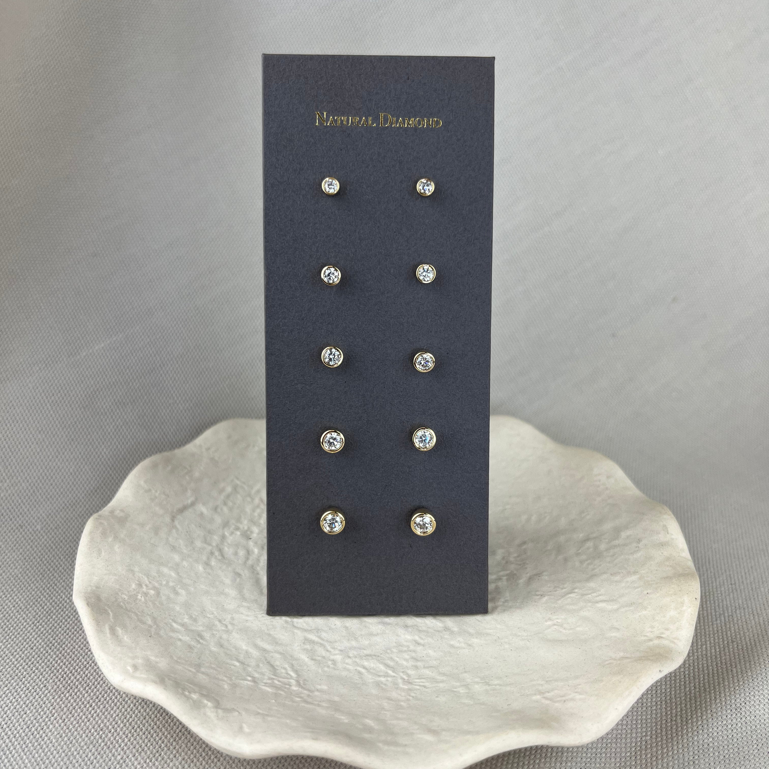 9ct Yellow Gold Diamond Solitaire Brilliant Cut Rubover Stud Earrings