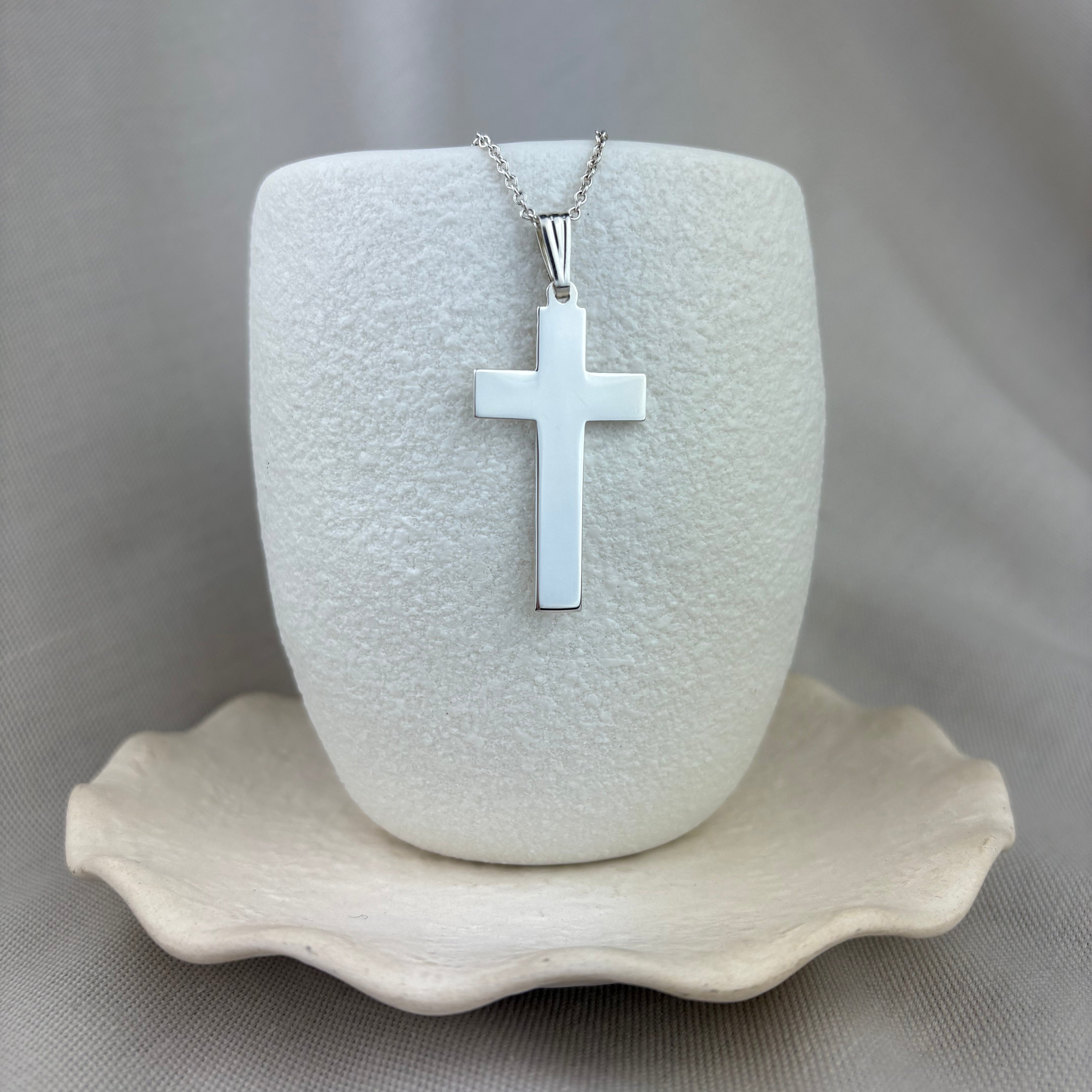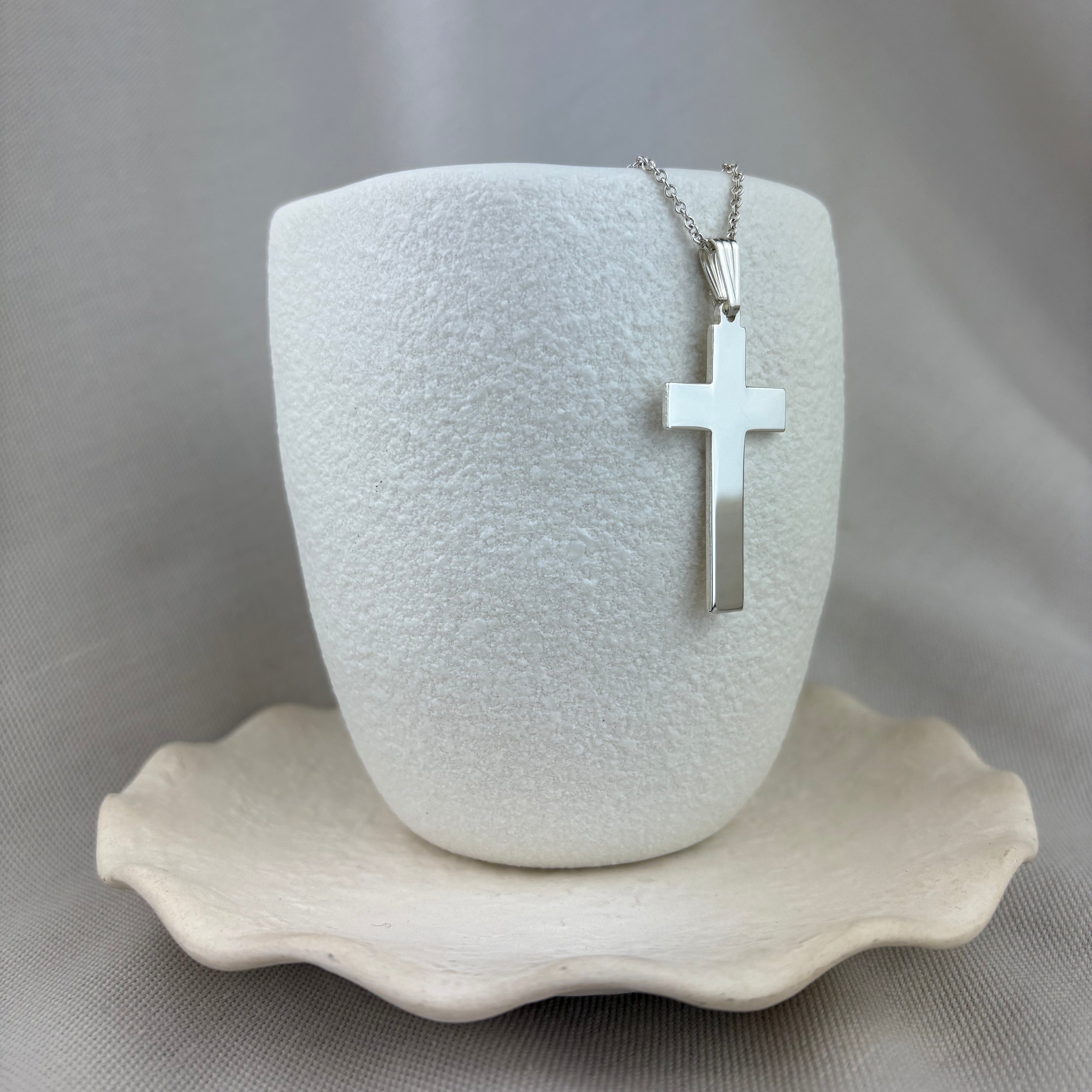 Sterling Silver Plain Solid Cross Pendant 39x22mm