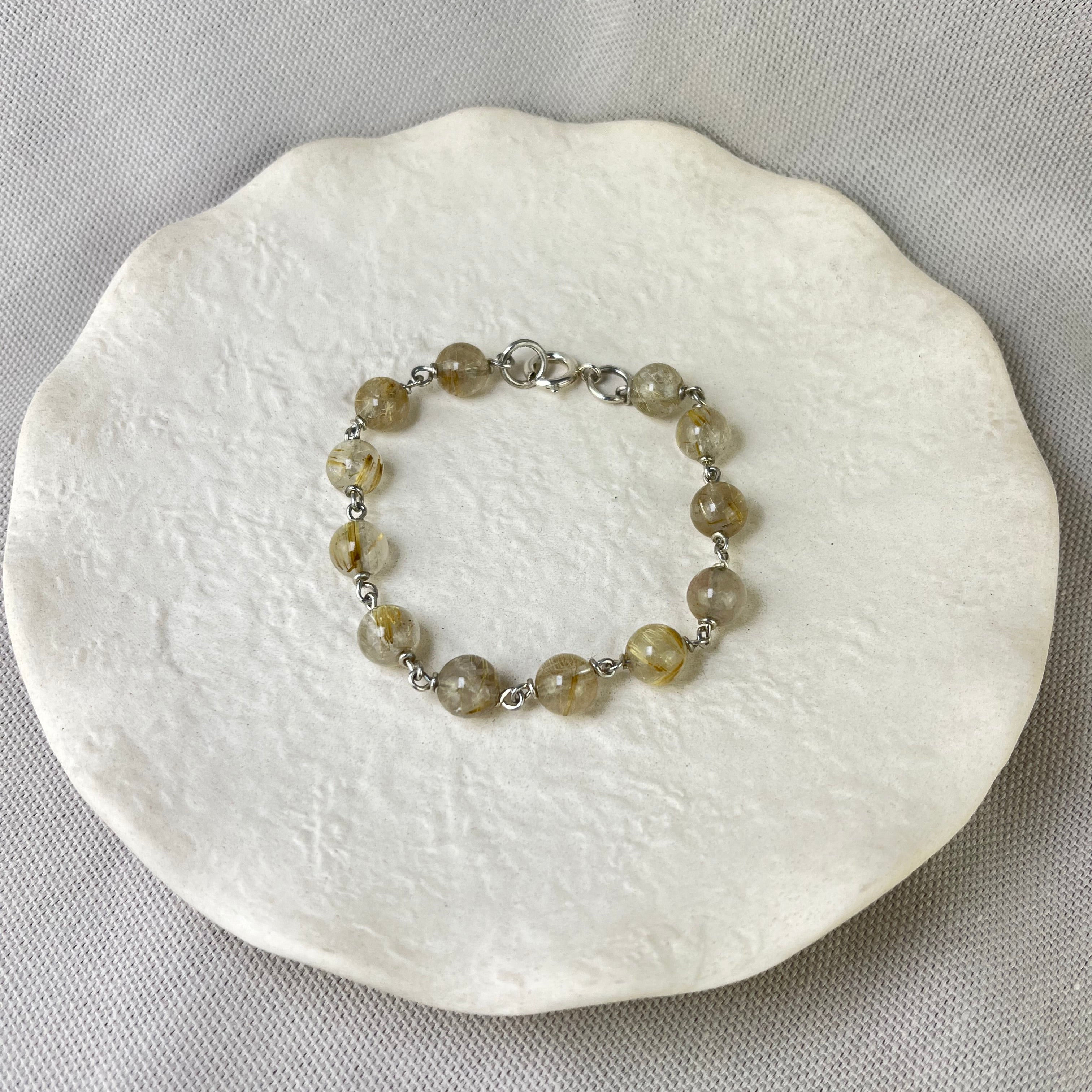 Sterling Silver Handmade Rutilated 'Angel Hair' Quartz Bead Bracelet