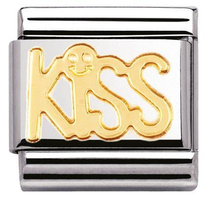 Nomination Composable Classic size charm in stainless steel with 18ct yellow gold KISS message.
