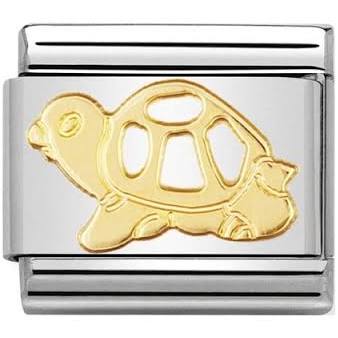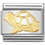 Nomination Composable Classic size charm in stainless steel with 18ct yellow gold Tortoise symbol.