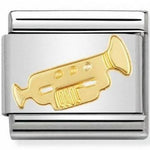 Nomination Composable Classic size charm in stainless steel with 18ct yellow gold Music Trumpet symbol.
