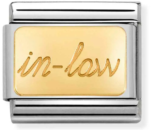 Nomination Composable Classic size charm in stainless steel with 18ct yellow gold engraved In-Law message.