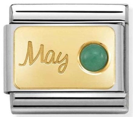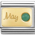 Nomination Composable Classic size charm in stainless steel with 18ct yellow gold engraved May Birthstone message.