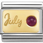 Nomination Composable Classic size charm in stainless steel with 18ct yellow gold engraved July Birthstone message.