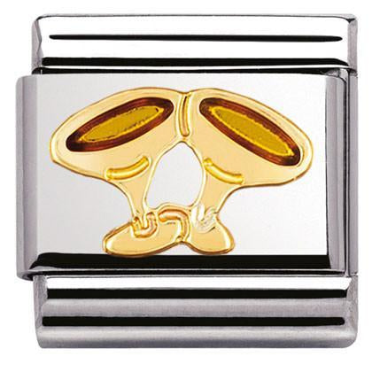 Composable Classic size charm in stainless steel with 18ct yellow gold golden enamel Champagne Saucer Cheers symbol.
