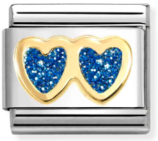 Nomination Classic Gold Glitter Enamel Blue Double Heart Charm