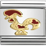 Composable Classic size charm in stainless steel with 18ct yellow gold dark red enamel Barcelona Rooster symbol.