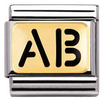 Composable Classic size charm in stainless steel with 18ct yellow gold black enamel Blood Type AB symbol.