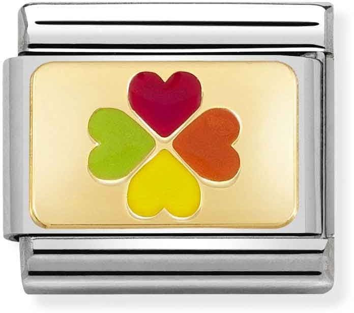 Nomination Classic Gold Rainbow Enamel Four Leaf Clover Charm SALE