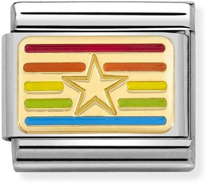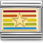Composable Classic size charm in stainless steel with 18ct yellow gold rainbow enamel Star symbol.