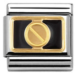 Nomination Composable Classic size charm in stainless steel with 18ct yellow gold black enamel Rivet symbol.