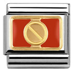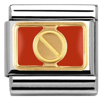 Nomination Composable Classic size charm in stainless steel with 18ct yellow gold red enamel Rivet symbol.
