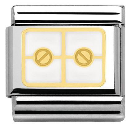 Nomination Composable Classic size charm in stainless steel with 18ct yellow gold white enamel Rivets symbol.