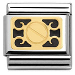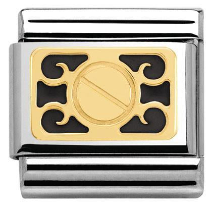 Nomination Composable Classic size charm in stainless steel with 18ct yellow gold black enamel Filigree Rivet symbol.