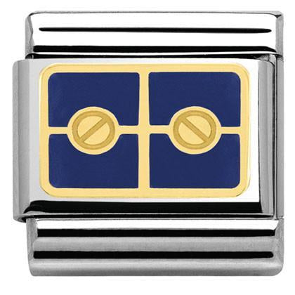Nomination Composable Classic size charm in stainless steel with 18ct yellow gold navy blue enamel Rivets symbol.