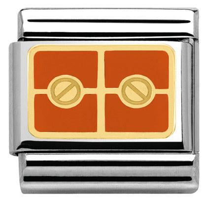 Nomination Composable Classic size charm in stainless steel with 18ct yellow gold orange enamel Rivets symbol.