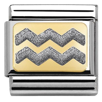 Nomination Composable Classic size charm in stainless steel with 18ct yellow gold silver glitter enamel Zig Zag symbol.